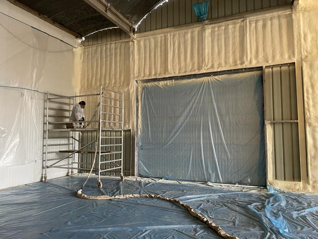 En France, nous avons équipé un hangar de stockage d’une isolation de toiture avec HR IsoSpray HFO, une mousse PUR à cellules fermées de haute qualité. Cette solution d’isolation a été appliquée sur une grande surface du hangar.